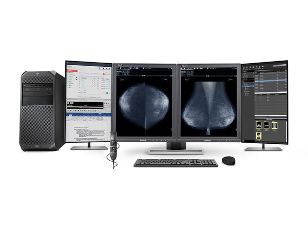 Complete Mammography Reading Station | Barco MDMG-5221 5MP Grayscale LED Monitors | HP Workstation | Dictation Mic | Worklist Monitors (5221Z42221)